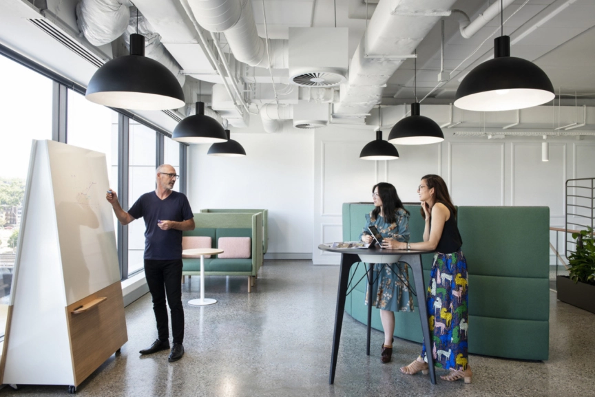 Le concept de Flex office peut présenter un attrait pour les utilisateurs : il s’inscrit dans la mouvance de l’Activity-Based Working» (aménagement de bureau par activités), qui encourage les collaborateurs à être mobiles dans les espaces de bureau et à se déplacer dans différents lieux, selon l’activité qu’ils mènent.